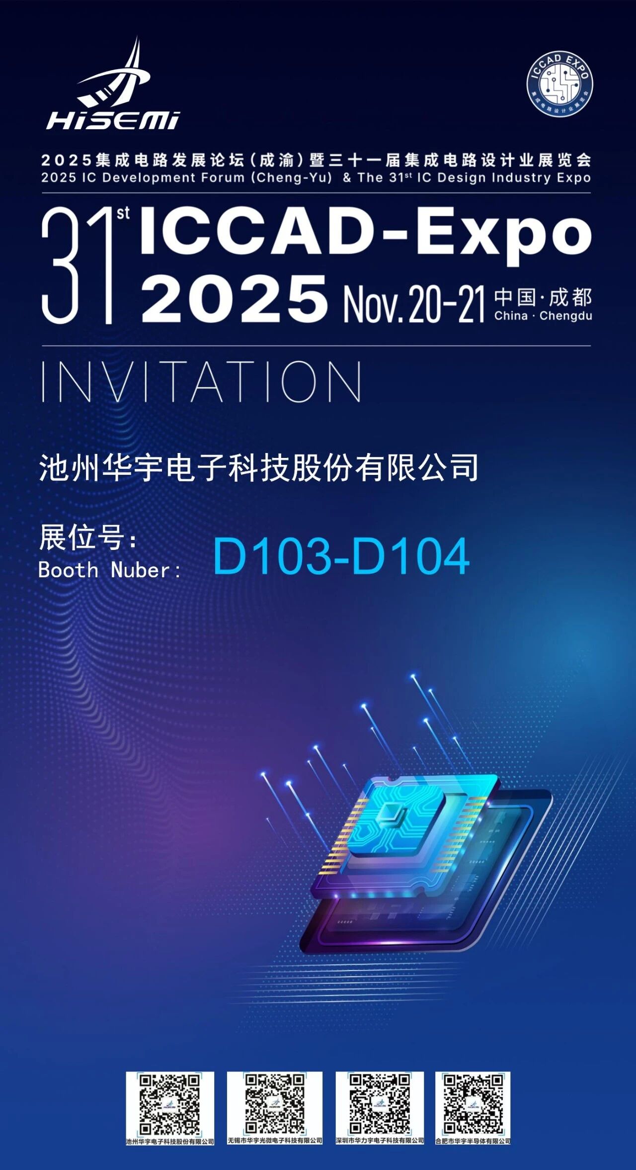 11月20-21日,中國集成電路設(shè)計業(yè)2025年會(ICCAD 2025) 在成都圓滿落幕。華宇電子攜先進(jìn)封裝FCBGA一站式解決方案精彩亮相,來自全國各地的行