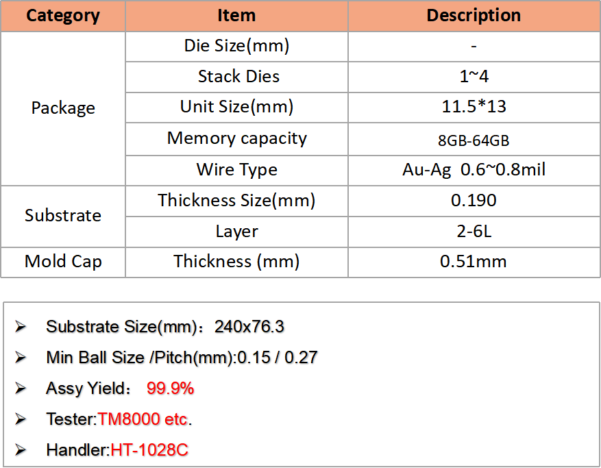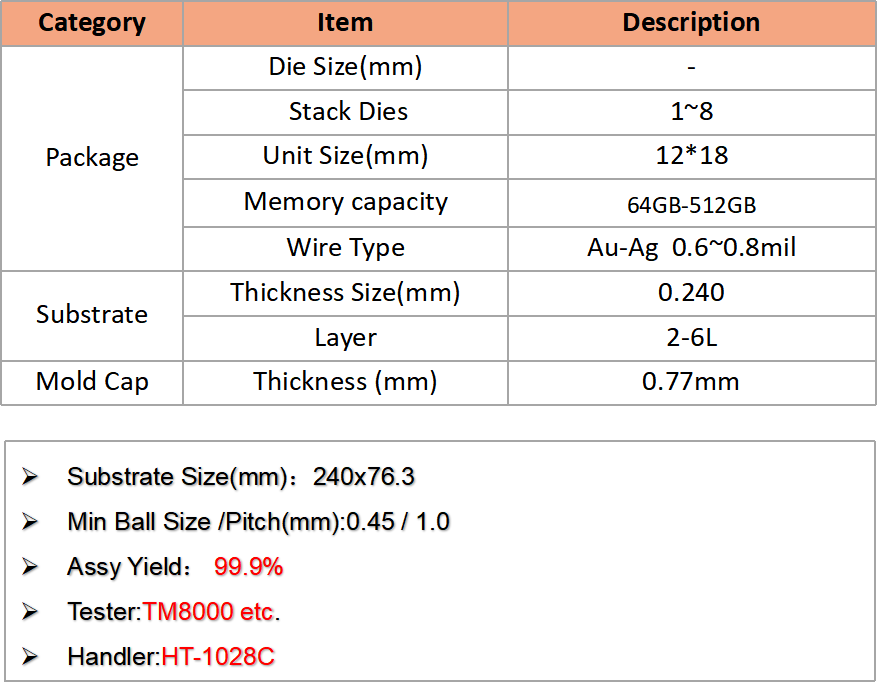 公司憑借先進(jìn)設(shè)備、嚴(yán)格工藝控制和全流程服務(wù),可為客戶提供高可靠Memory芯片封測解決方案。