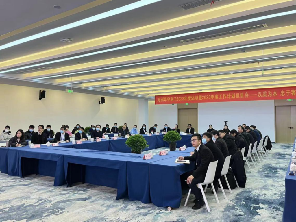 日月其邁,時(shí)盛歲新。2月4日,池州華宇電子2022年度述職報(bào)告暨2023年度工作計(jì)劃安排會(huì)圓滿召開。此次大會(huì)以“以質(zhì)為本 忠于客戶”為主題,全面復(fù)盤總結(jié)了2022年度各項(xiàng)工作,布局2023年發(fā)展規(guī)劃,并簽訂經(jīng)營(yíng)目標(biāo)指標(biāo)責(zé)任書,為公司進(jìn)一步實(shí)現(xiàn)高質(zhì)量發(fā)展統(tǒng)一了思想。
